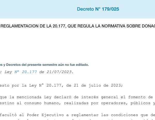 El Poder Ejecutivo aprobó la reglamentación de la Ley de Donación de Alimentos (20.177 de julio 2023), estableciendo un marco preciso para que las empresas donen excedentes aptos para consumo de manera segura y ordenada.